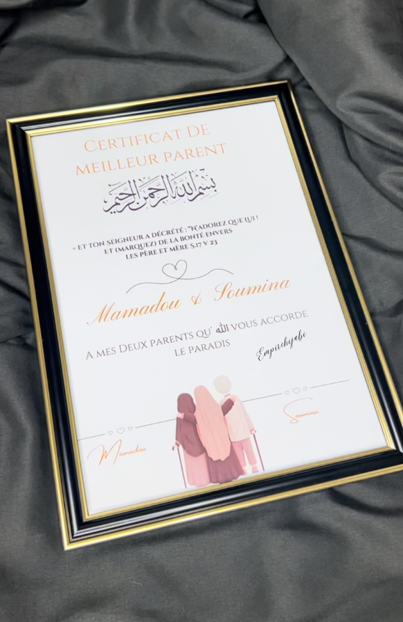 Reconnaissez le travail acharné des parents avec notre certificat de "meilleur parent religieux". Ajoutez-le à votre panier et faites un cadeau qui touchera le cœur.