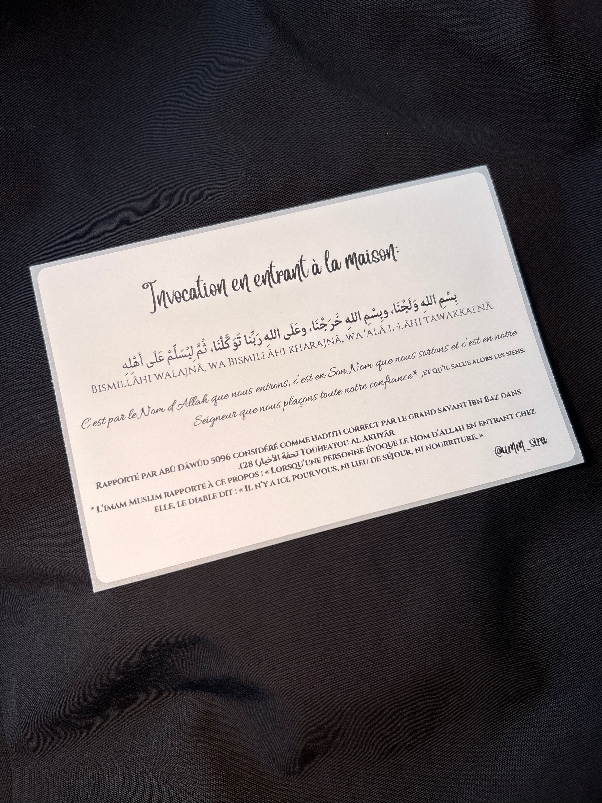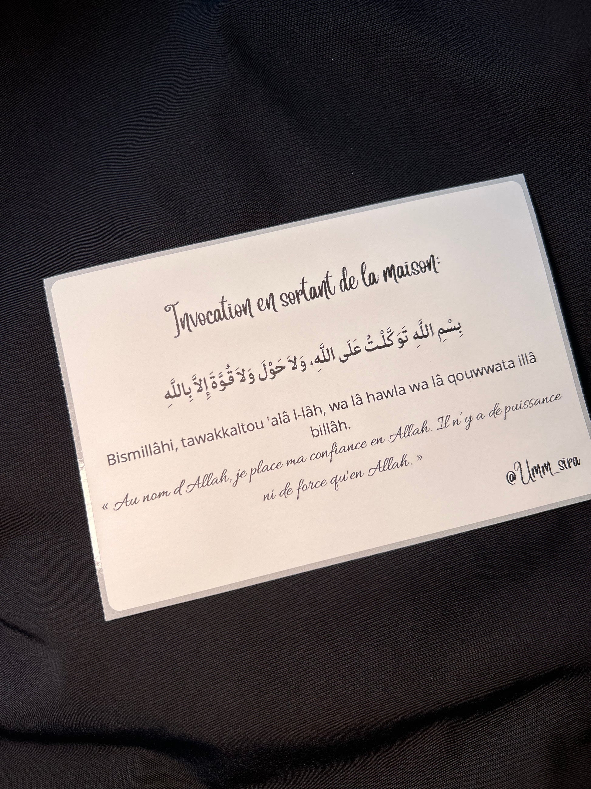 Ces stickers autocollants noir & blanc , que tu peux placer où tu veux, sont une méthode idéale pour t'aider à mémoriser les invocations du quotidien. Ils te rappellent constamment les prières essentielles tout en ajoutant une touche spirituelle à ton environnement.